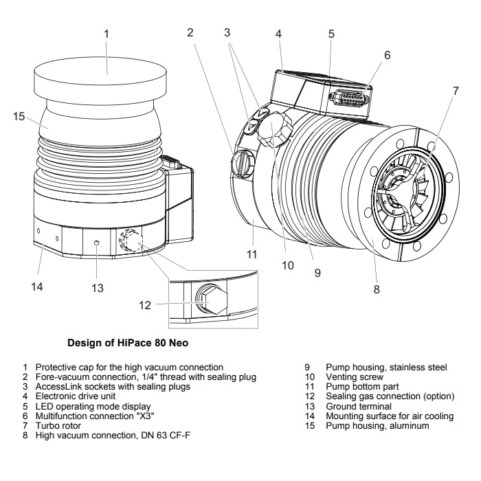 The Pfeiffer HiPace 80 Neo Series is a small yet powerful turbopump featuring pumping speeds up to 67 l/s for N2. The HiPace 80 Neo models are cost-effective and offer flexible installation in any orientation. The proven bearing system provides unrivaled dependability and their sophisticated rotor design makes for higher pumping speeds, higher backing pump compatibility, higher gas throughputs and good compression for light gasses.