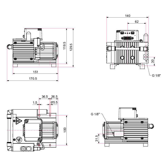 Pfeiffer MVP015 2 DC diaphragm pumps are positive displacement pumps with a periodic change of size of the suction chamber produced by the movement of the diaphragm. The gas flow causes the valves to open and close automatically. The pump units are directly connected to the drive motor.