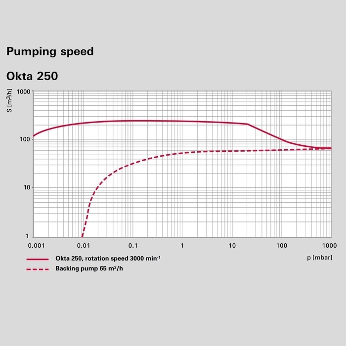 The pumping speed of our Pfeiffer Okta Line Roots Pumps (Vacuum Boosters, Vacuum Blowers) ranges from 250 to 25,000 m³/h. They can be optimally employed for a wide variety of low and medium vacuum applications.
