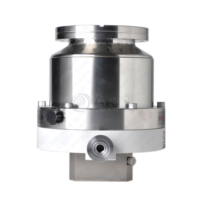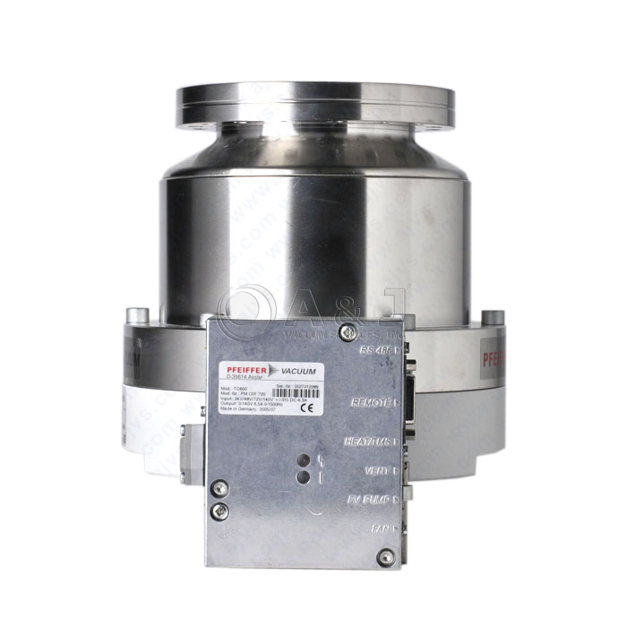 This Pfeiffer Pump has a wear free permanent magnetic bearing at the high vacuum side and a oil lubricated ceramic bearing at the backing side. The Turbo Pumps TMH and TMU models are aidentical in terms of design. They only differ in their intake flange.