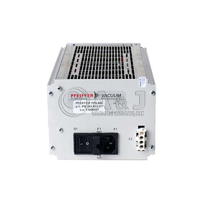 The Pfeiffer Vacuum TPS 600 / PM 041 815-AT Turbo Pump Power Supply is used to supply voltage to Pfeiffer Turbomolecular Pumps with integrated Electronic Drive Units.
