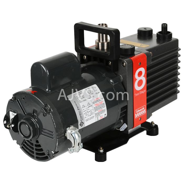 The Edwards E2M8 pumps are oil-sealed and designed for reliable, long-term operation in both laboratory and industrial environments. The pumps are free-standind units. The drive is provided through a flexible coupling by a single-phase or three-phase motor.