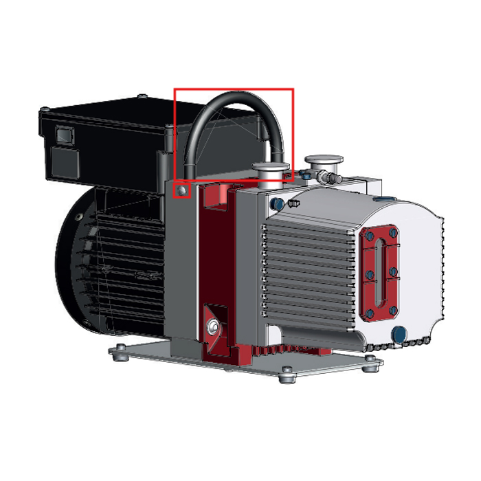 The vacuum pumps are equipped with a high vacuum safety valve which, when the pump is at a standstill, closes the vacuum chamber tight and at the same time vents the pump. The new design includes a handle.