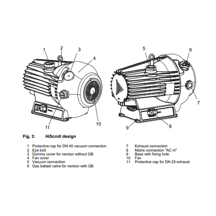 The Pfeiffer HiScroll 46 is from the newest generation of completely oil free, dry scroll pumps. The HiScroll pumps have IPM (Interior Permanent Magnet) synchronus motors that achieve greater efficiency of up to 15% compared to conventional drive pumps. This translates to lower temperatures at maximum performance through reduced heat generation and minimal cooling requirements. The HiScroll 46 is ideal for compact systems and environments where cooling efficiency is important.