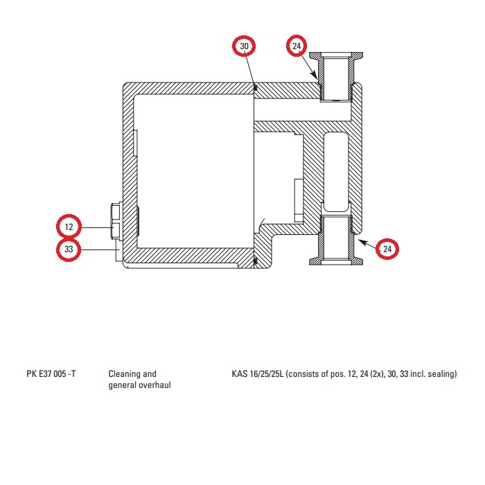 Pfeiffer KAS Overhaul Maintenance Kit PKE37005-T is designed to be used with Pfeiffer KAS 16, KAS 25 and KAS 25L only.