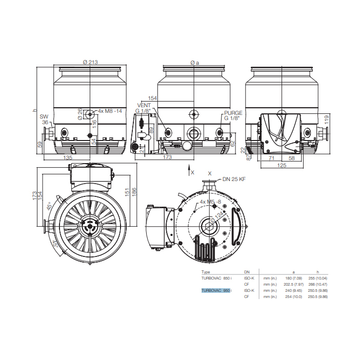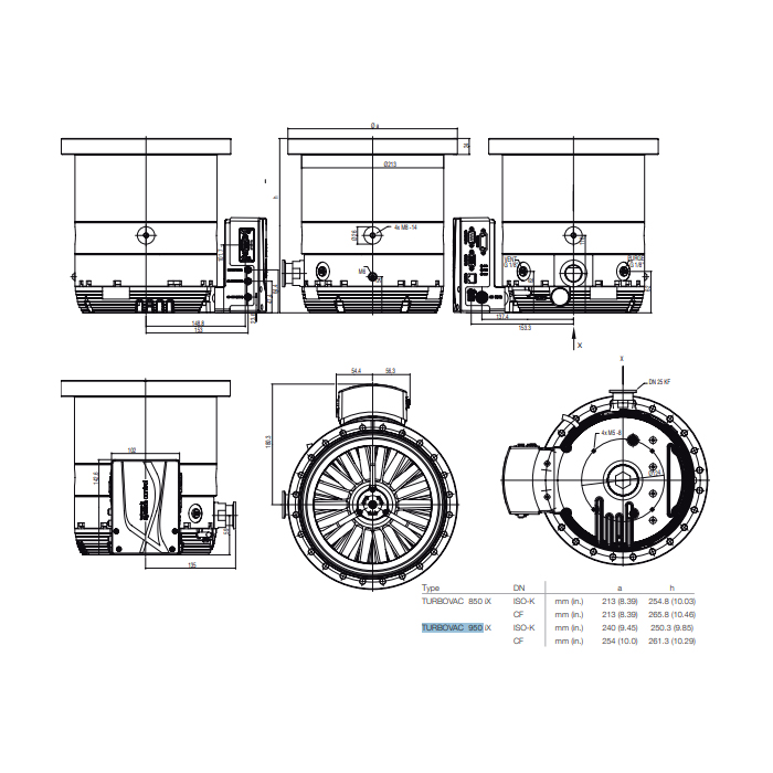 With the Leybold Turbovac 950 iX high-vacuum pump, improving your industrial vacuum processes has never been easier and more convenient. The Leybold Turbovac 950i/950iX Series of industrial high-vacuum turbo pumps allows users to optimize pump down times and consistently achieve optimal pressures and gas flows. The 950iX series pump is particularly designed to offer the best performance-to-size ratio among pumps within the ISO 200 CF inlet size range. A defining feature of this product family includes a cutting-edge rotor along with drag-stage design, effectively resulting in high performance and unparalleled pumping speed, particularly for light gas varieties.
