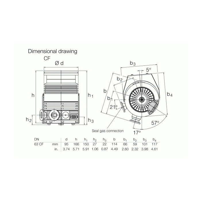 The pump is driven by an electronic frequency converter TURBO.DRIVE. All functions like, for example, speed control, pump sensing or temperature monitoring are monitored by the TURBO.DRIVE. This unit is powered by an external power supply. The drive may be installed beside or underneath the pump or up to 5 m away. The pumps are equipped with a purge gas facility.