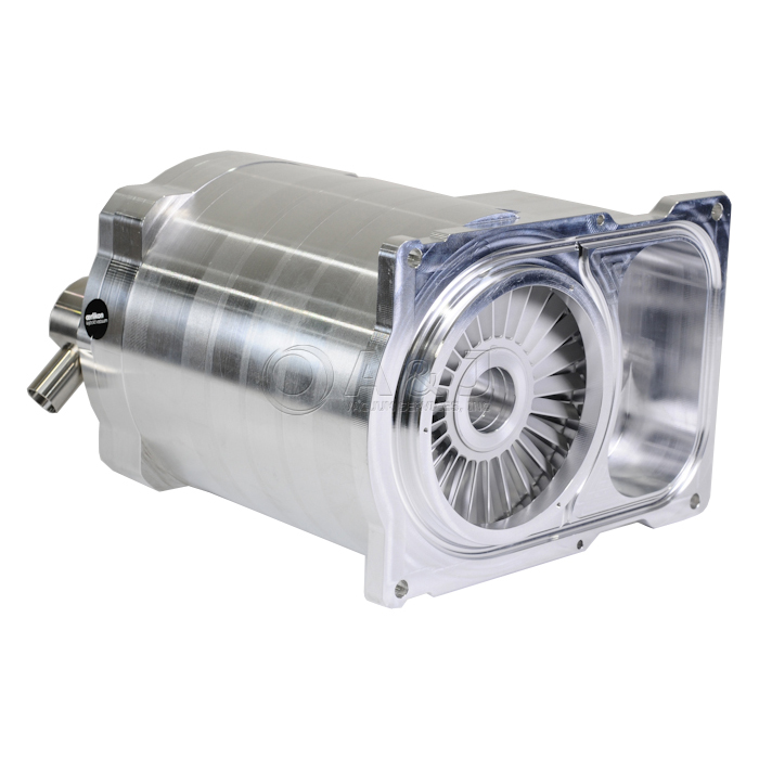 The pump is driven by a split-cage DC motor. In this motor the rotor and stator windings are separated by a vacuum-tight can. Consequently the rotor runs inside the vacuum while the stator is outside the vacuum. This eliminates any need of vacuum feedthroughs. The pump is equipped with a temperature sensor and a resistor code.