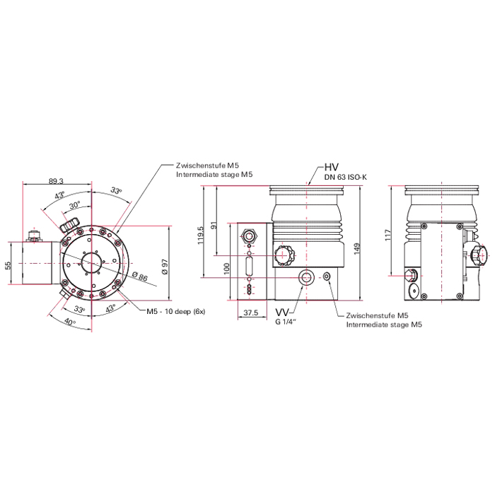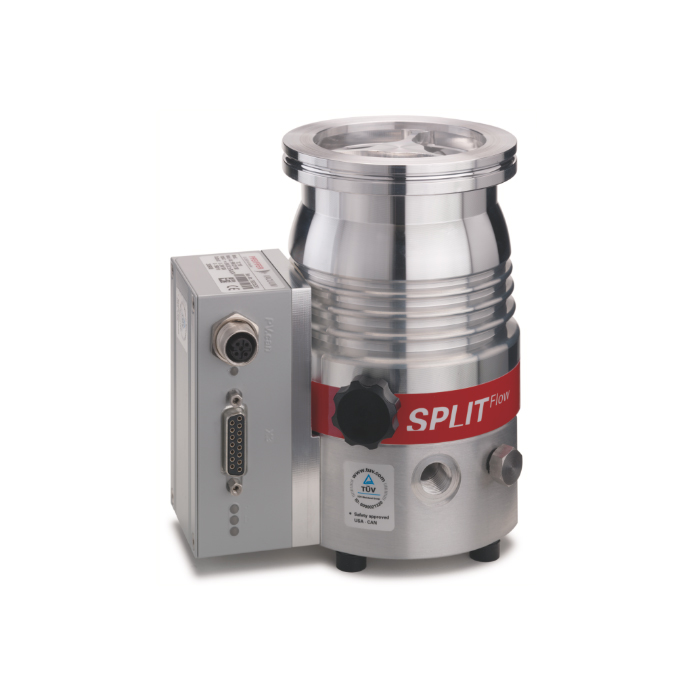 The Pfeiffer SplitFlow 50 / PM P04 340 A models are cost-effective and offer flexible installation in any orientation. The proven bearing system provides unrivaled dependability and their sophisticated rotor design makes for higher pumping speeds, higher backing pump compatibility, higher gas throughputs and good compression for light gasses.