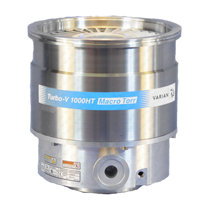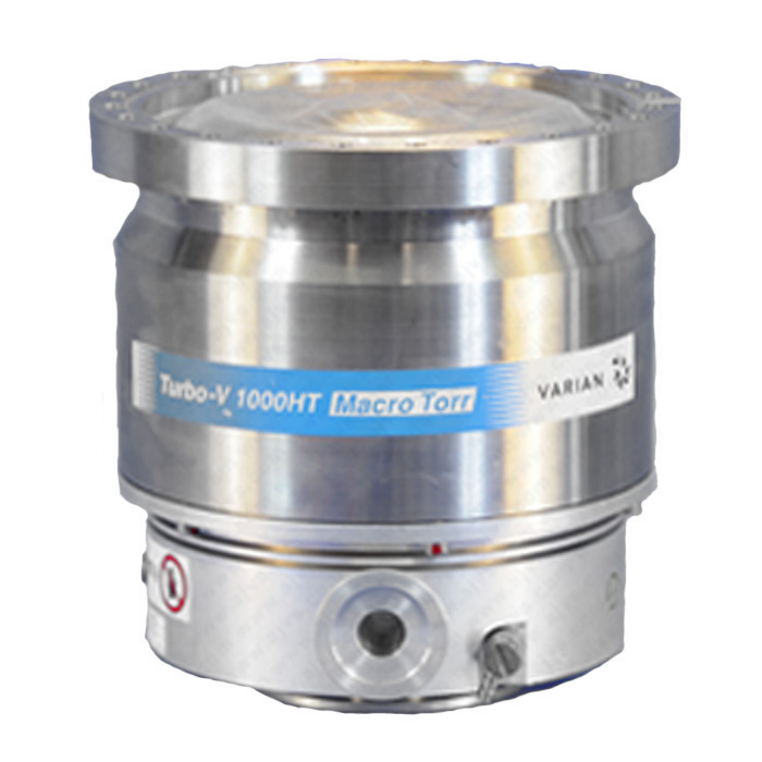 The TV 1001 Navigator is an integrated system with a turbomolecular pump for high and ultra-high vacuum applications with its relevant controller. The system can pump any type of gas or gas compound. It is not suitable for pumping liquids or solid particles. The pumping action is obtained through a high speed turbine (max. 38000 rpm) driven by a high-performance 3-phase electric motor. The TV 1001 Navigator is free of contaminating agents and, therefore, is suitable for applications requiring a "clean" vacuum. It is equipped with auxiliary connectors to supply an additional fan, to control the vent valve, to be controlled from a remote site by means of an host computer connected through a serial line (RS232 or RS485). The TV 1001 / 969-8930 Tubro Pump is available in six different models that differ only in the high vacuum flange. The pump consists of a high frequency motor driving a turbine fitted with 8 bladed stages and 4 Macrotorr stages. The turbine rotates in an anticlockwise direction when viewed from the high vacuum flange end. The turbine is made of high-strength aluminium alloy, machined from a single block. The Macrotorr stages are in the form of four discs. The turbine rotor is supported by permanently lubricated high precision ceramic ball bearings installed on the forevacuum side of the pump. The static blades of the stator are made of stainless steel. These are supported and accurately positioned by spacer rings. The Macrotorr stators are in the form of selfpositioning machined discs with pumping channels and an opening restricted by the corresponding rotor discs. These are made of aluminium alloy.