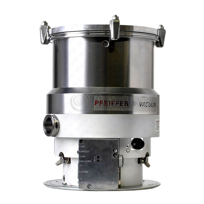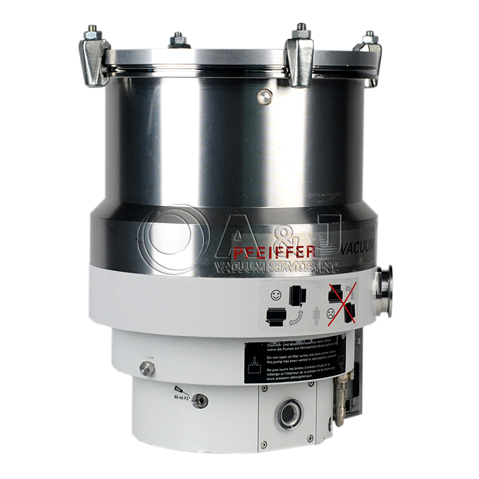 This Pfeiffer Pump has a wear free permanent magnetic bearing at the high vacuum side and a oil lubricated ceramic bearing at the backing side. The Turbo Pumps TMH and TMU models are identical in terms of design. They only differ in their intake flange.