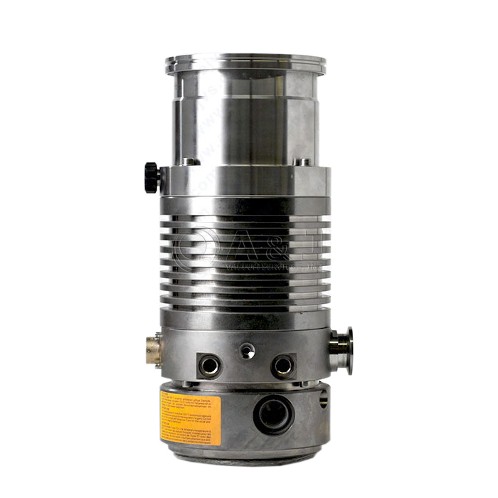 Pfeiffer TPH-180HC Turbo Pump has a free of wear permanent upper magnetic bearing at high vacuum side and oil lubricated ceramic bearing at the lower backing side.
