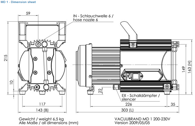 The Vacuubrand MD1 diaphragm pump is an excellent choice for oil-free evacuation and pumping of non-corrosive gases down to 1.5 mbar ultimate vacuum.
