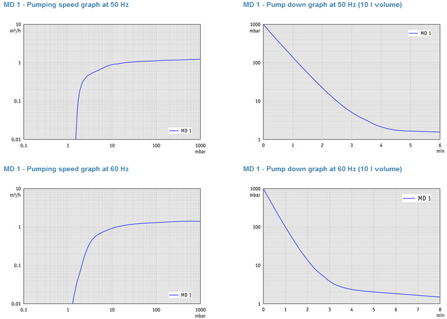 | Max. pumping speed at 50/60 Hz | m3/h | 1.2 / 1.4 |