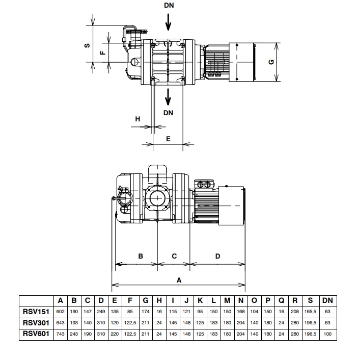 The roots RSV601 booster units are called ”in vacuum rotor” machines, i.e., the rotor of the electric motor is completely isolated by