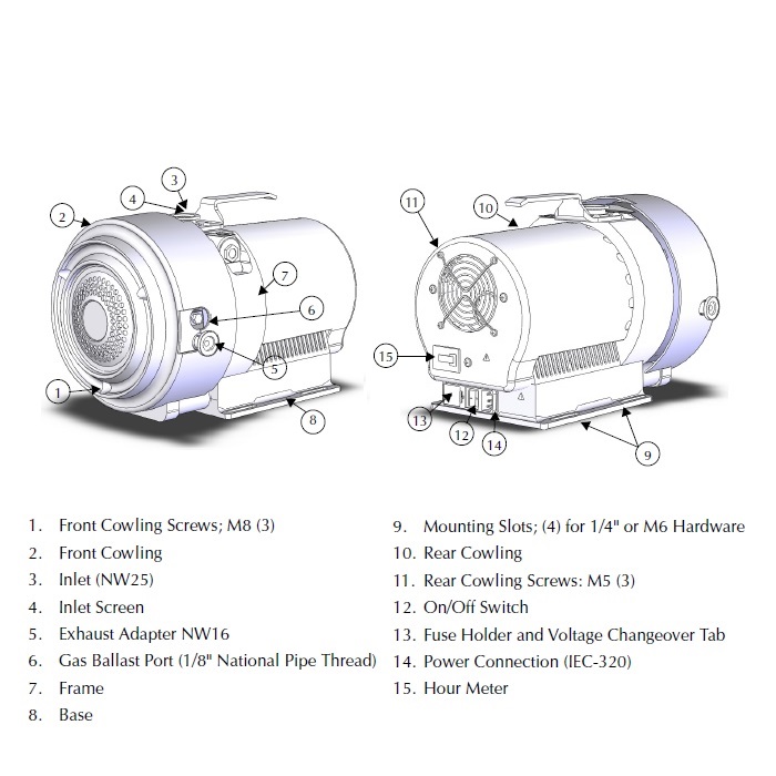 Ultimate pressure: 5.0 x 10-2 Torr (6.6 x 10-2mbar)