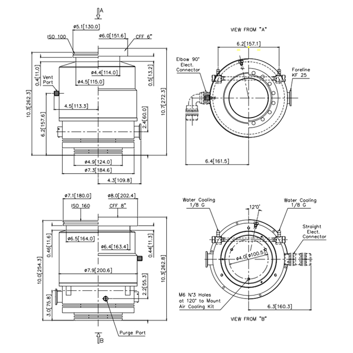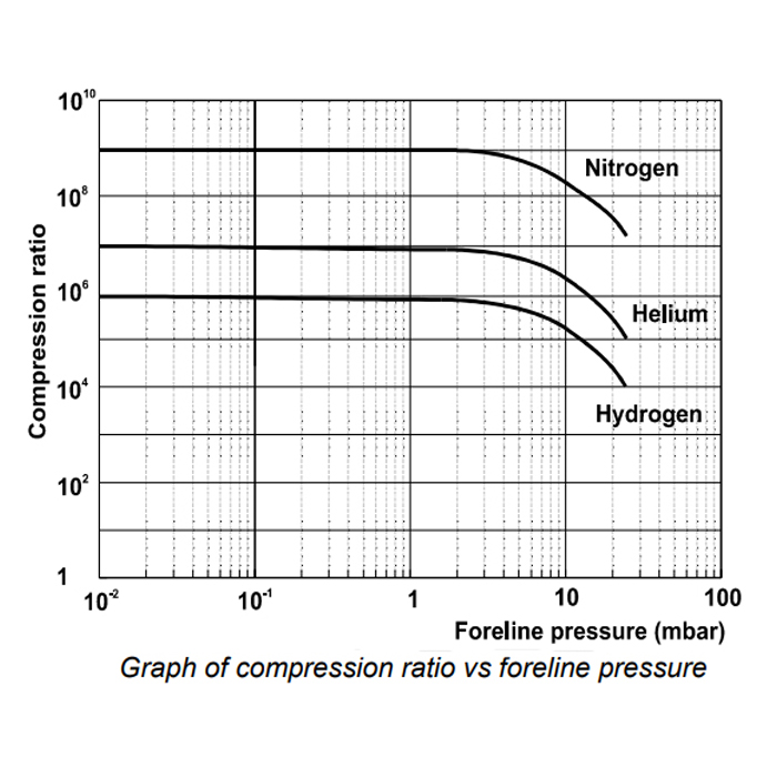 The Turbo-V550 pump consists of a high frequency motor driving a turbine fitted with 8 bladed stages and 4 Macrotorr stages. The turbine rotates in an anticlockwise direction when viewed from the high vacuum flange end.