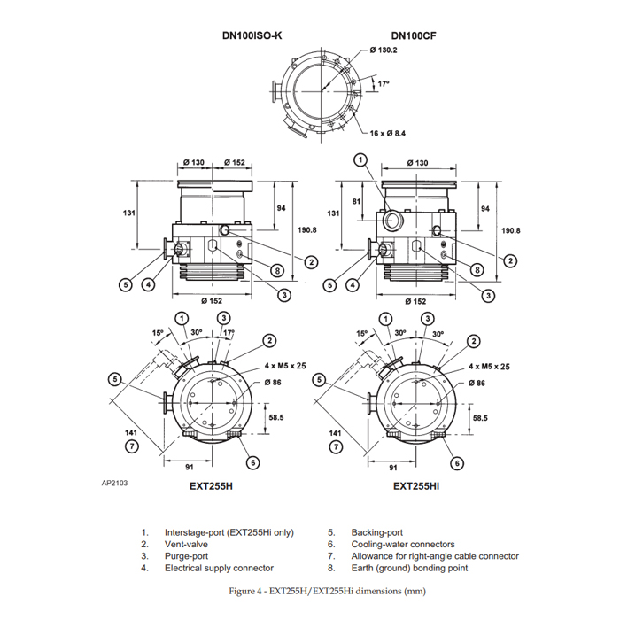 The EXT 255H, EXT 255Hi and EXT 255HVi pumps are compound vacuum pumps that combine a turbomolecular pump and a drag pump on a single shaft. The turbomolecular pump is made from a multi-stage axial-flow turbine which is optimised for