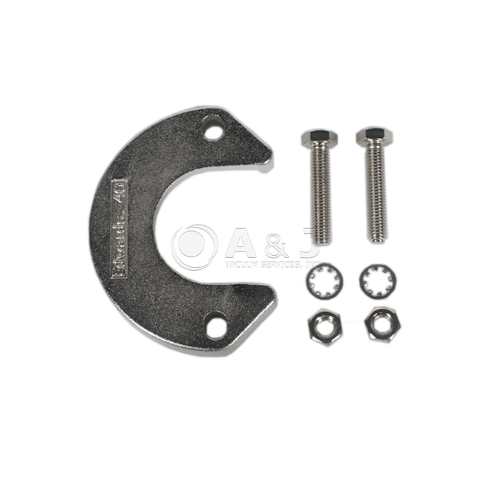 Edwards KF 40 (NW 40) C Clamp, C11005340. These Clamps, manufactured by Edwards Vacuum, consist of stainless steel, and come with two screws, two nuts, and two washers.