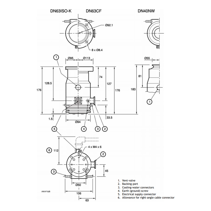The Edwards EXT70 pump has a vent-port that you can use to vent the pump and your vacuum system to atmospheric pressure. The vent-port introduces vent gas part way up the pump rotor; this ensures maximum cleanliness. The pump is supplied with a manual vent-valve fitted to the vent-port.
