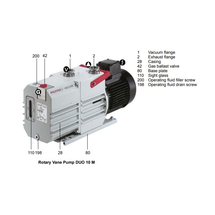 Pfeiffer Vacuum DUO 10 M Rotary Vane Vacuum Pump, Single Phase, 100-110 V (50 Hz), 100-120 V (60 Hz) PK D62 707 / PKD62707
