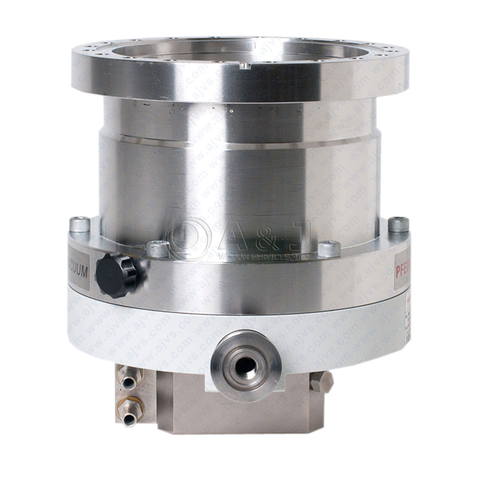 This Pfeiffer Pump has a wear free permanent magnetic bearing at the high vacuum side and a oil lubricated ceramic bearing at the backing side. The Turbo Pumps TMH and TMU models are aidentical in terms of design. They only differ in their intake flange.