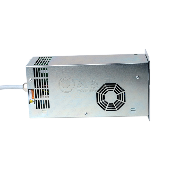 The power supply converts the single phase (50-60 Hz) AC mains supply into a 3-phase, low voltage, medium frequency output which is required to power the Turbo-V pump. The microcomputer generates the variable output frequency and controls the 3-phase output voltage according to the software and the gas load condition of the pump.