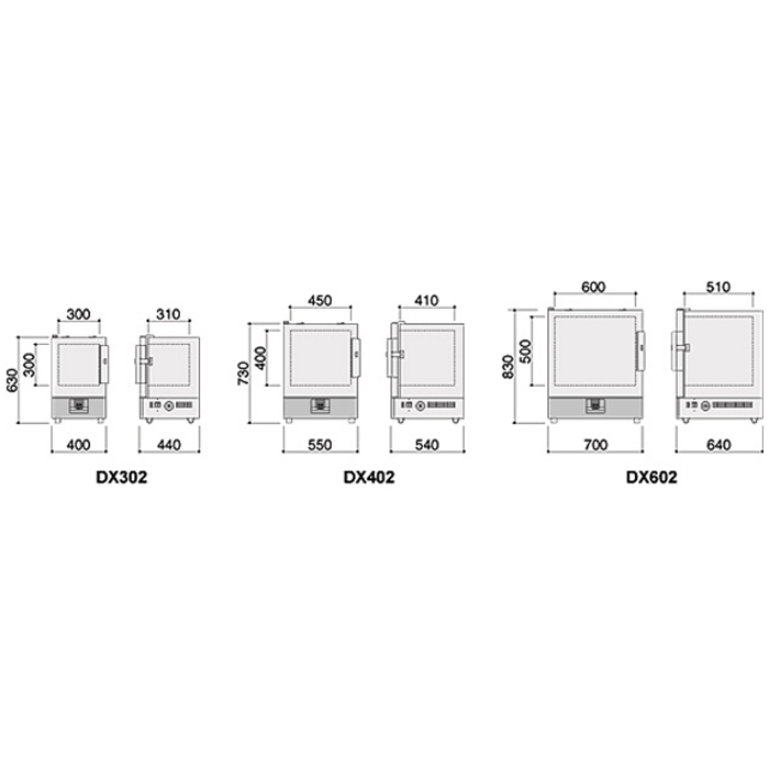 The DX-302, DX-402, DX-602 series of Natural Convection Ovens represents a standard type of natural convection constant temperature drying ovens with constant temperature. They are equipped with a newly developed easy operation controller, and digital setting and indication method by up and down key input is adopted.