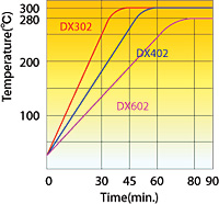 The DX-302, DX-402, DX-602 series of Natural Convection Ovens represents a standard type of natural convection constant temperature drying ovens with constant temperature. They are equipped with a newly developed easy operation controller, and digital setting and indication method by up and down key input is adopted.